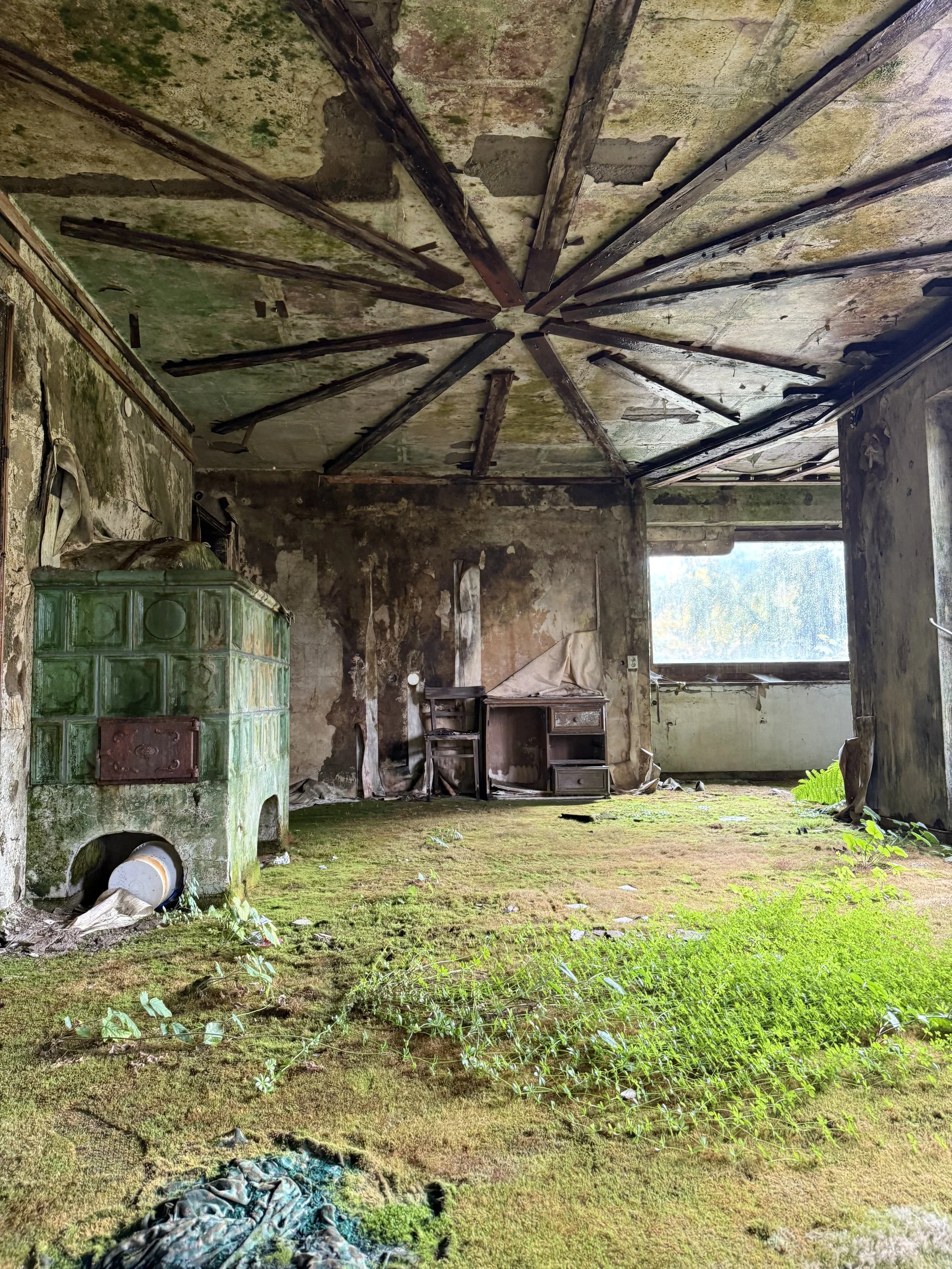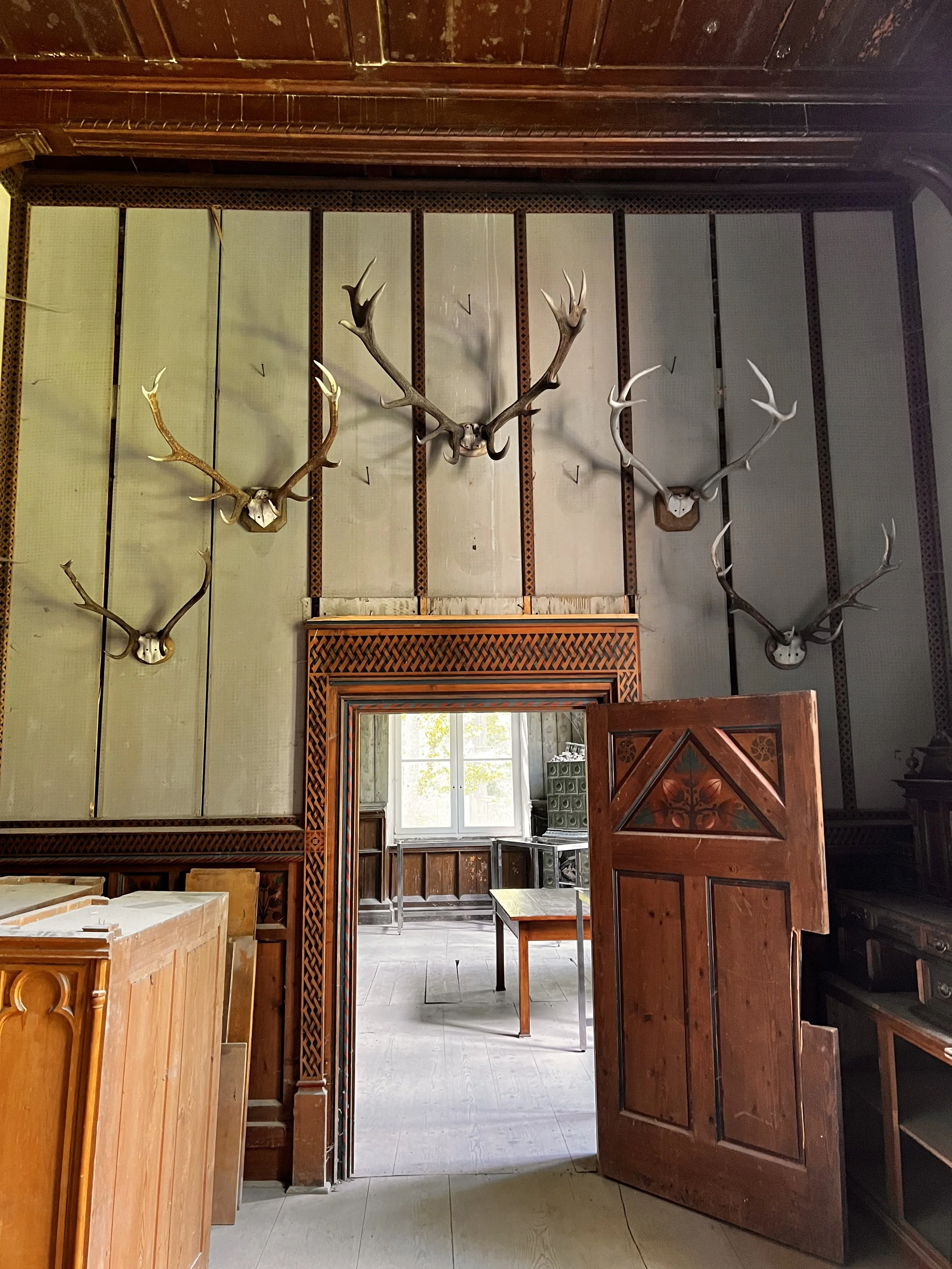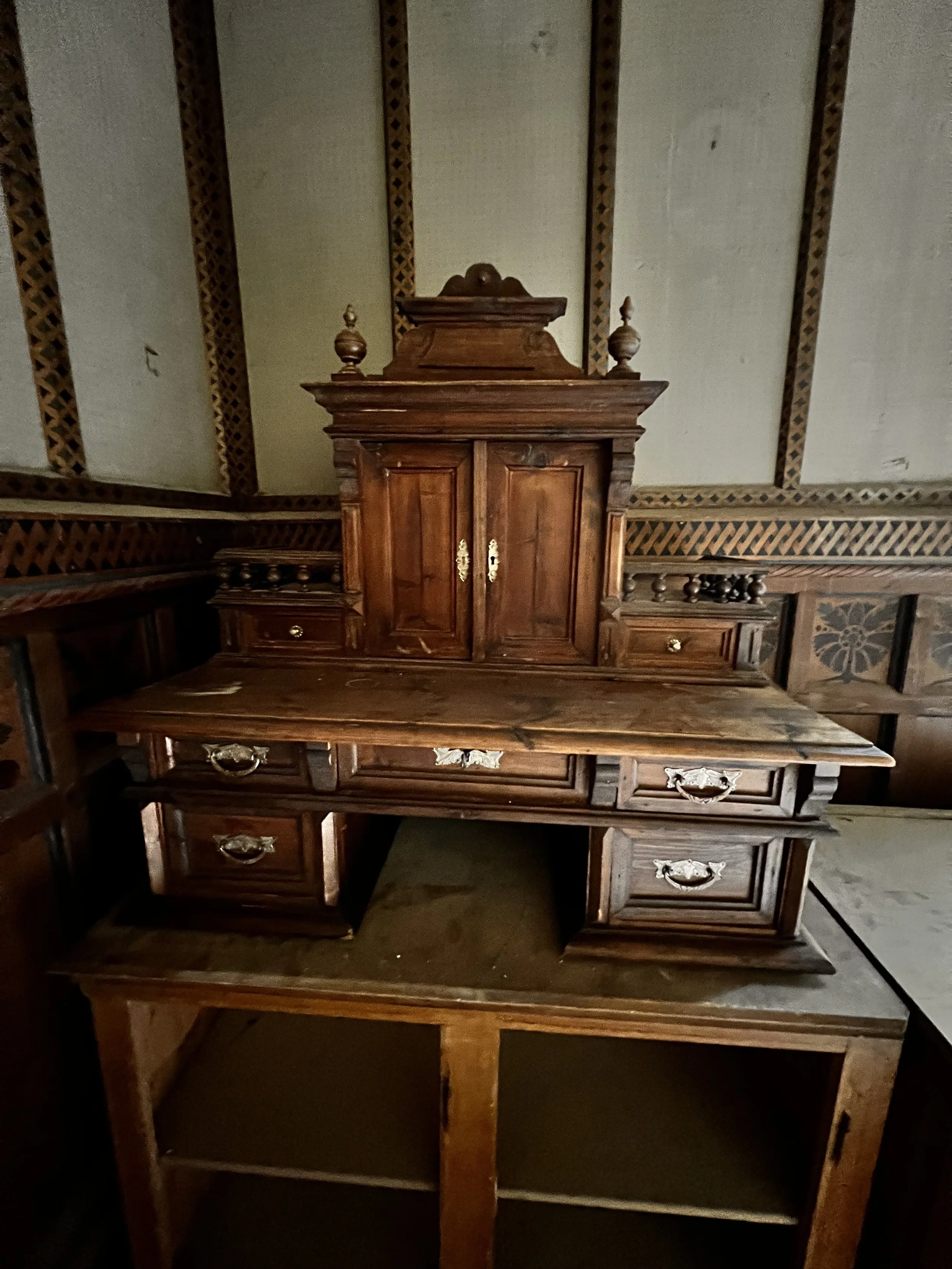 Originally built in the 19th century by a noble family as a hunting lodge and retreat, the building later fell into long neglect. At the time of the exploration, renovation work was already underway, leaving only one accessible room — but even this fragment conveyed how imposing the residence must once have been.