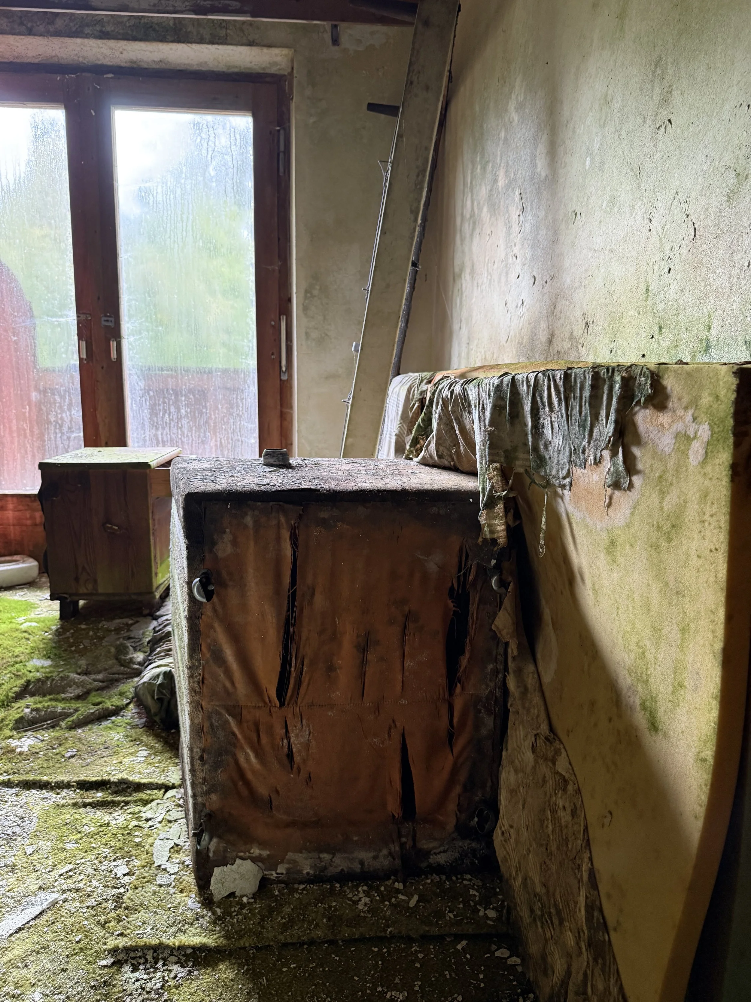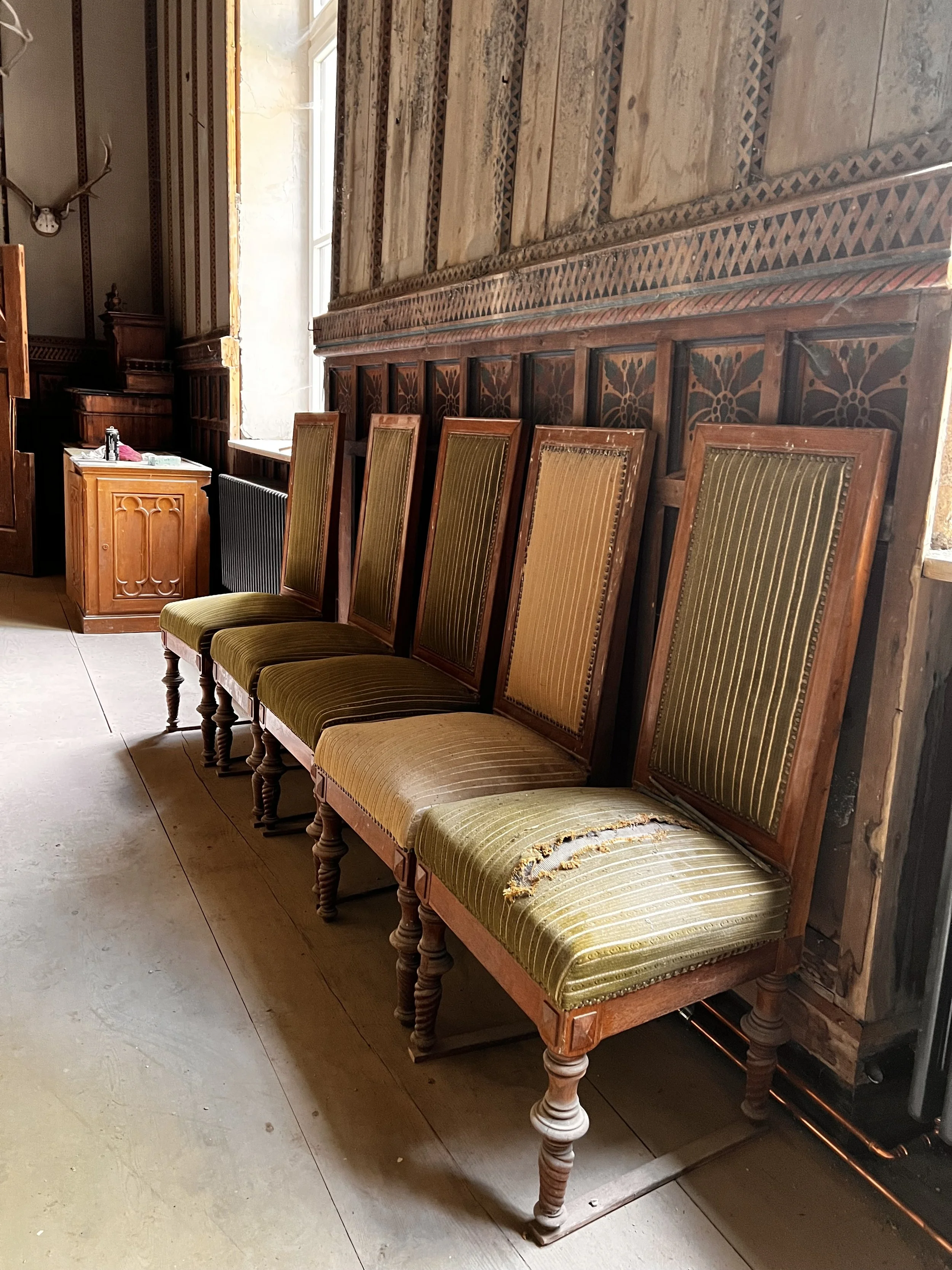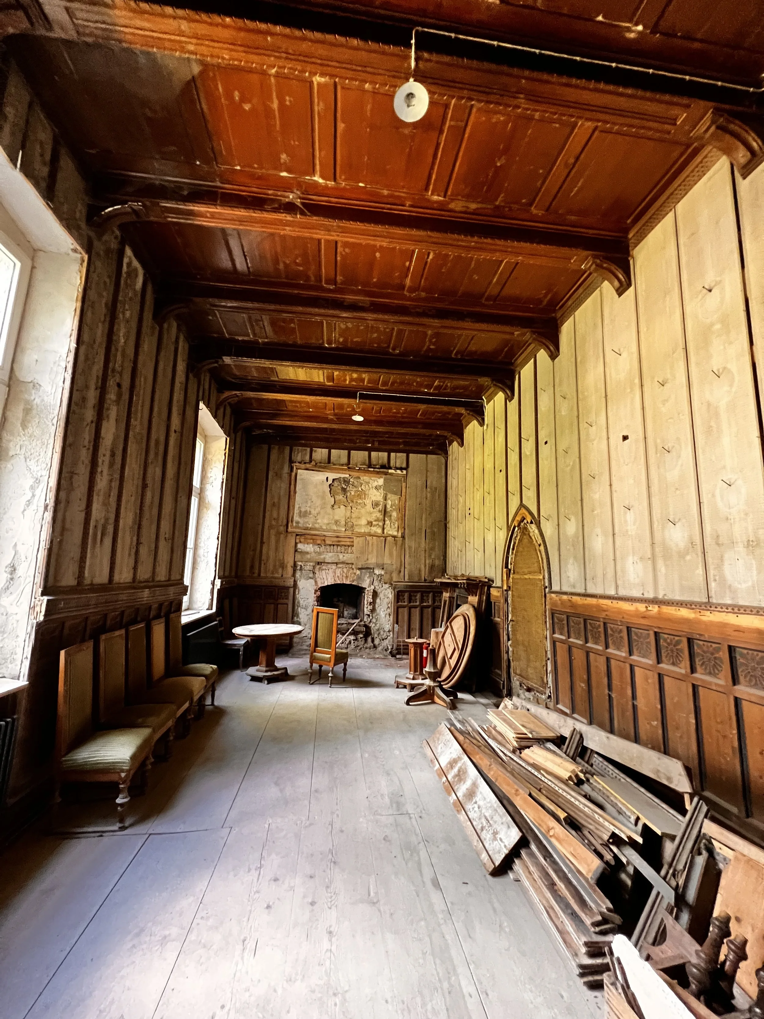 Originally built in the 19th century by a noble family as a hunting lodge and retreat, the building later fell into long neglect. At the time of the exploration, renovation work was already underway, leaving only one accessible room — but even this fragment conveyed how imposing the residence must once have been.