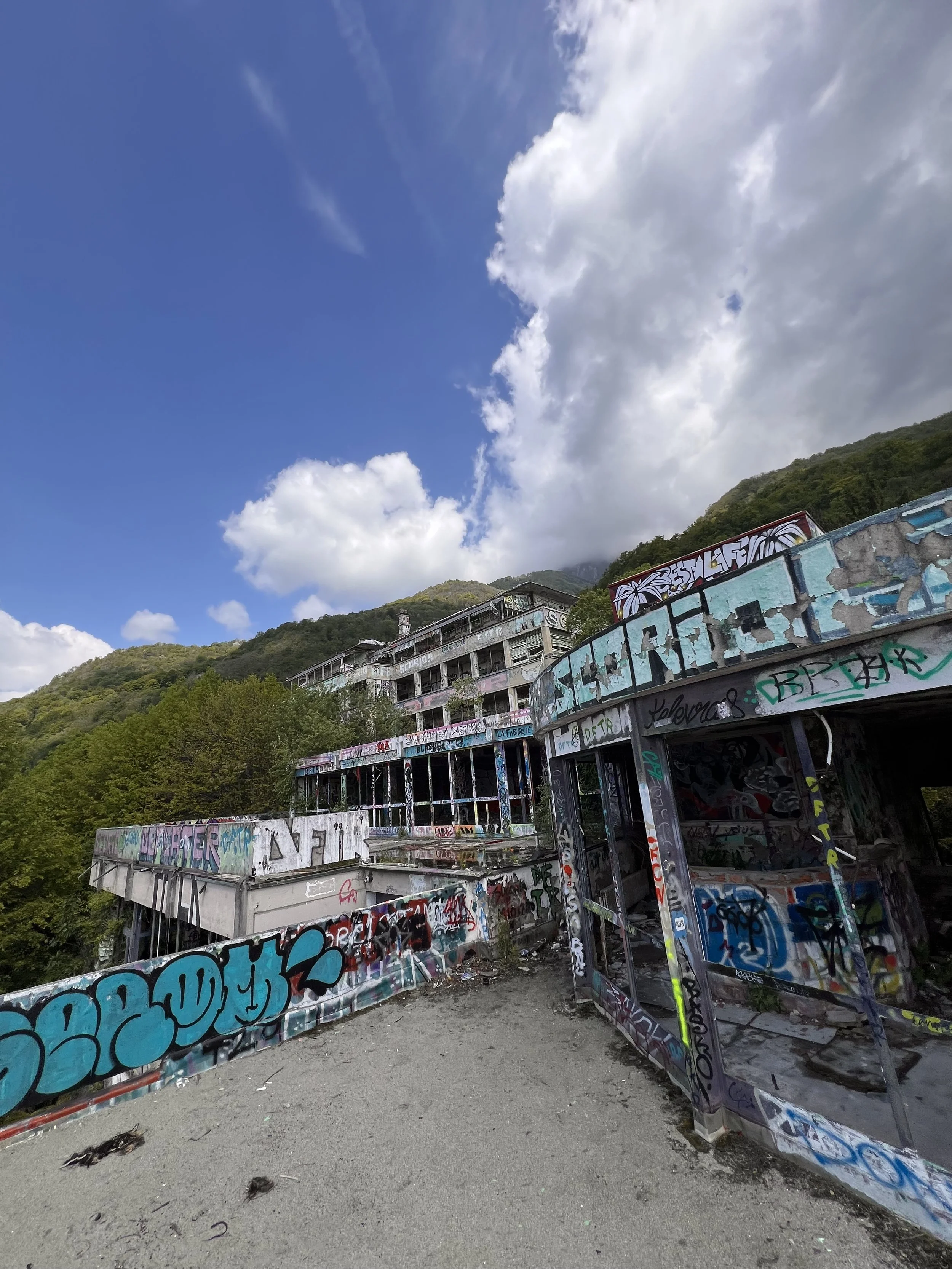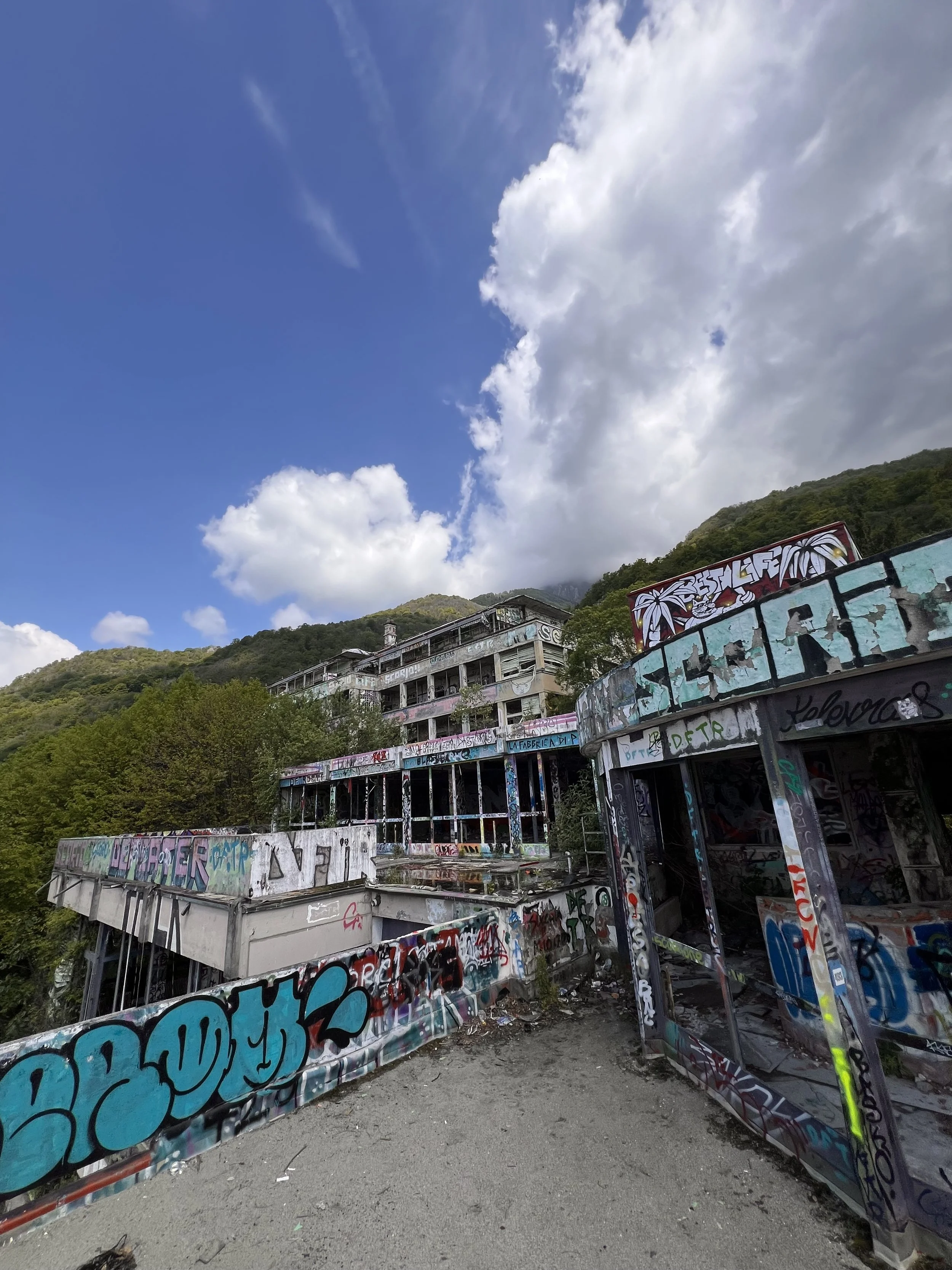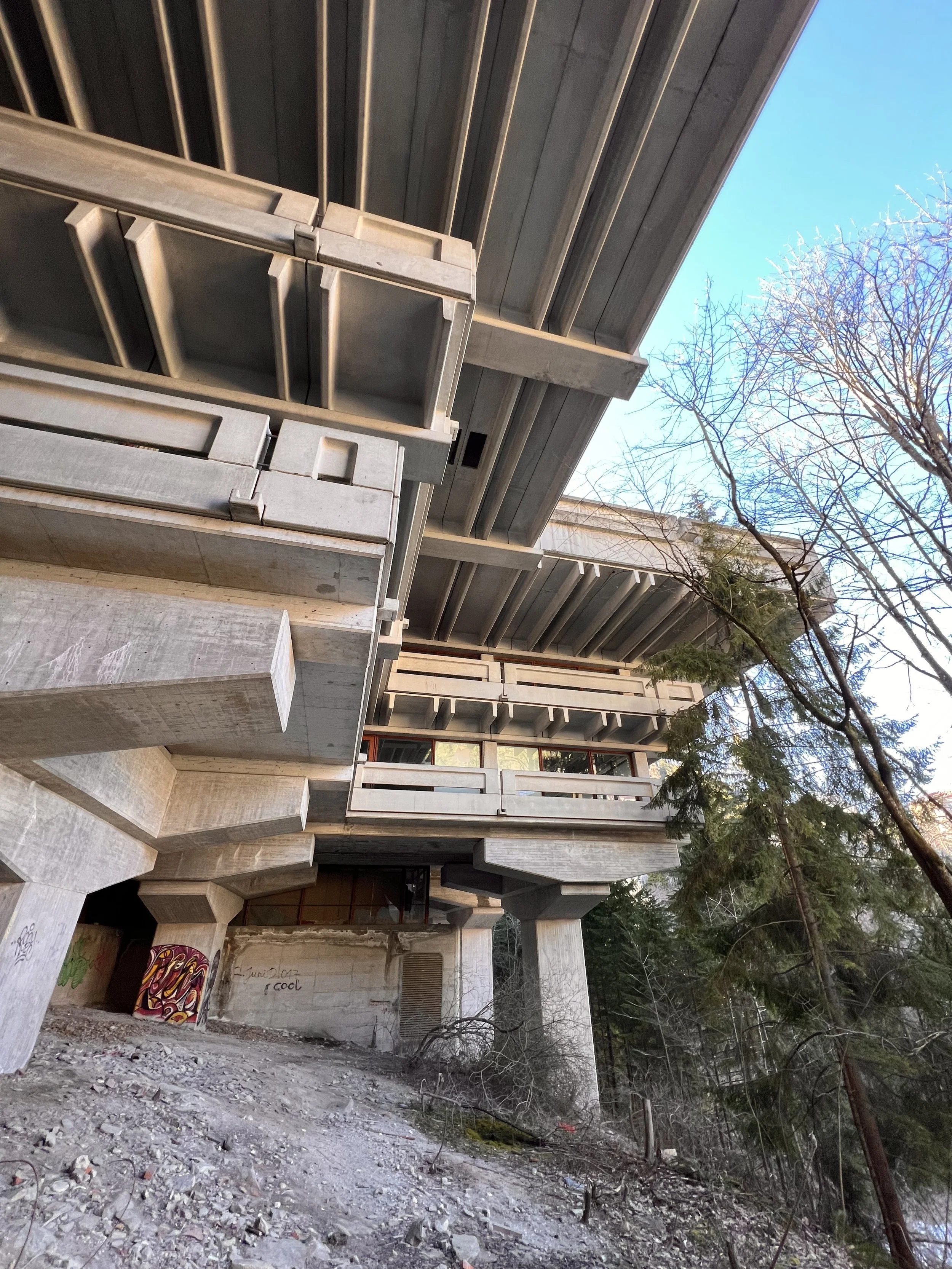 Once a four-star hotel, this building has stood abandoned for roughly two decades. Once welcoming guests in the alpine resort town, it is now a decaying structure owned by foreign investors and left without care. Efforts by the municipality to address its future have so far led nowhere, leaving the former hotel as a ghostly reminder of tourism’s changing fortunes and the impact of neglect.