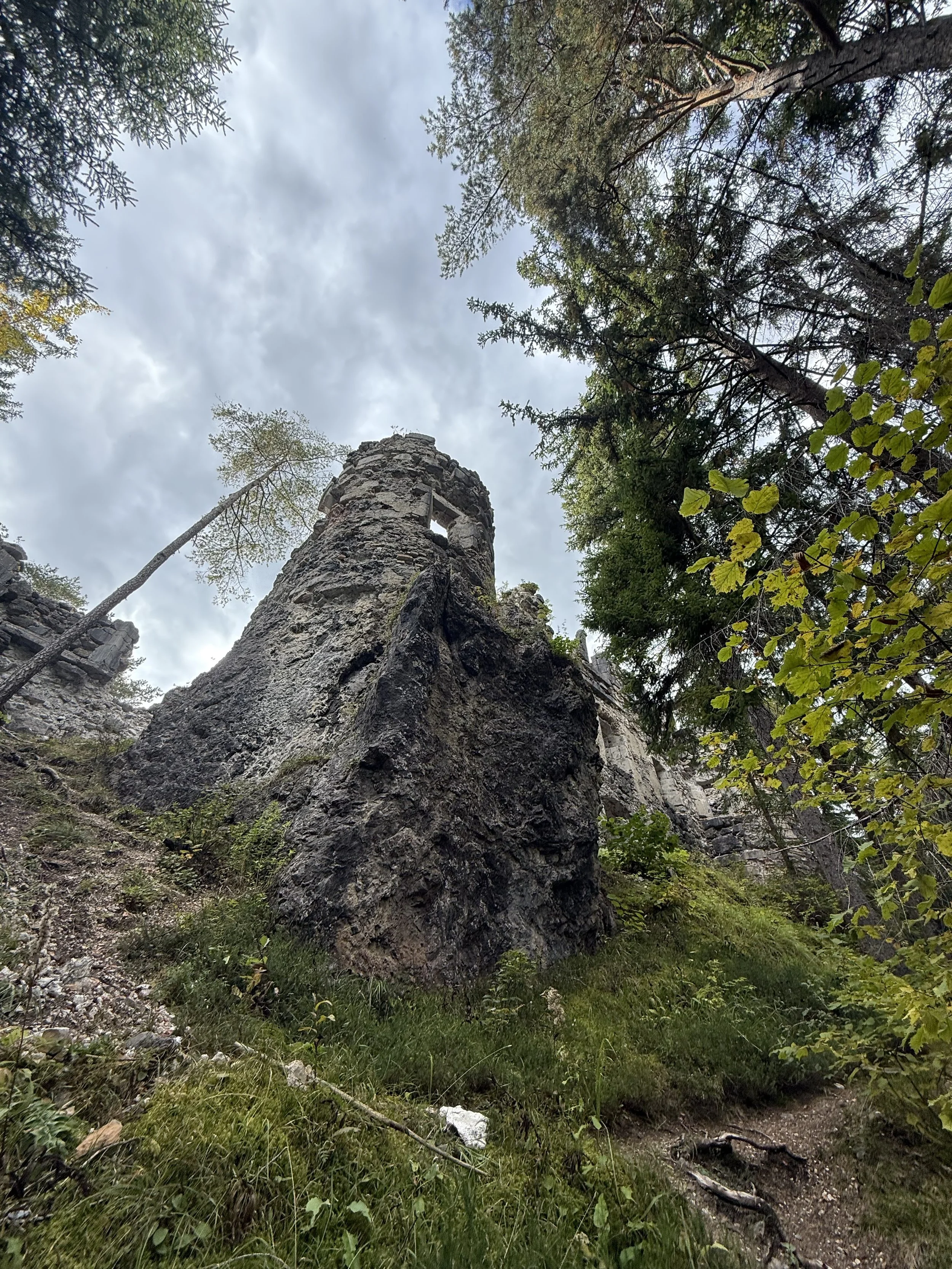 Built in the 15th century as a residence for Duke Sigmund’s wife, the castle was never fully completed. After short periods of noble use, it was abandoned and slowly decayed. Today, only weathered wall fragments remain, quietly merging with nature.