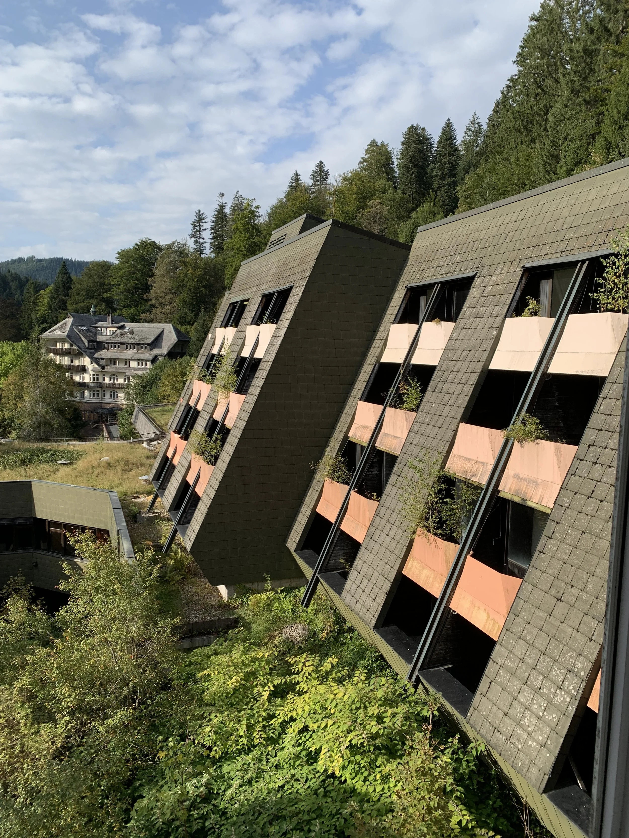 The clinic opened in 1977 as a large rehabilitation and post-acute care facility, specializing in orthopedics and internal medicine. With over 24,000 square meters of space, it offered numerous single rooms, wheelchair-accessible areas, and staff facilities. Its location in the Black Forest, known for clean mountain air and mineral baths, made it an ideal environment for recovery. Over the years, however, patient numbers declined, and the clinic was finally closed in 2011. Since then, the sprawling complex has stood abandoned and is now regarded as a notable lost place in the region.